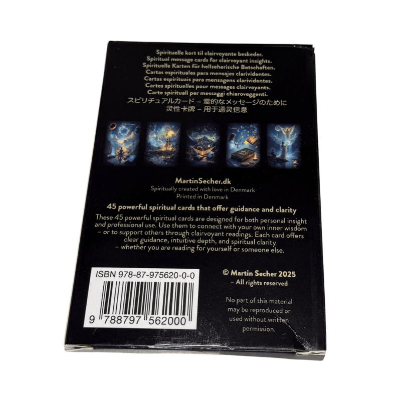 Disse 45 kraftfulde spirituelle kort er designet til både personlig indsigt og professionel brug. Brug dem til at få kontakt med din egen indre visdom – eller til at støtte andre gennem clairvoyante læsninger. Hvert kort tilbyder klar vejledning, intuitiv dybde og spirituel klarhed – uanset om du læser for dig selv eller en anden.