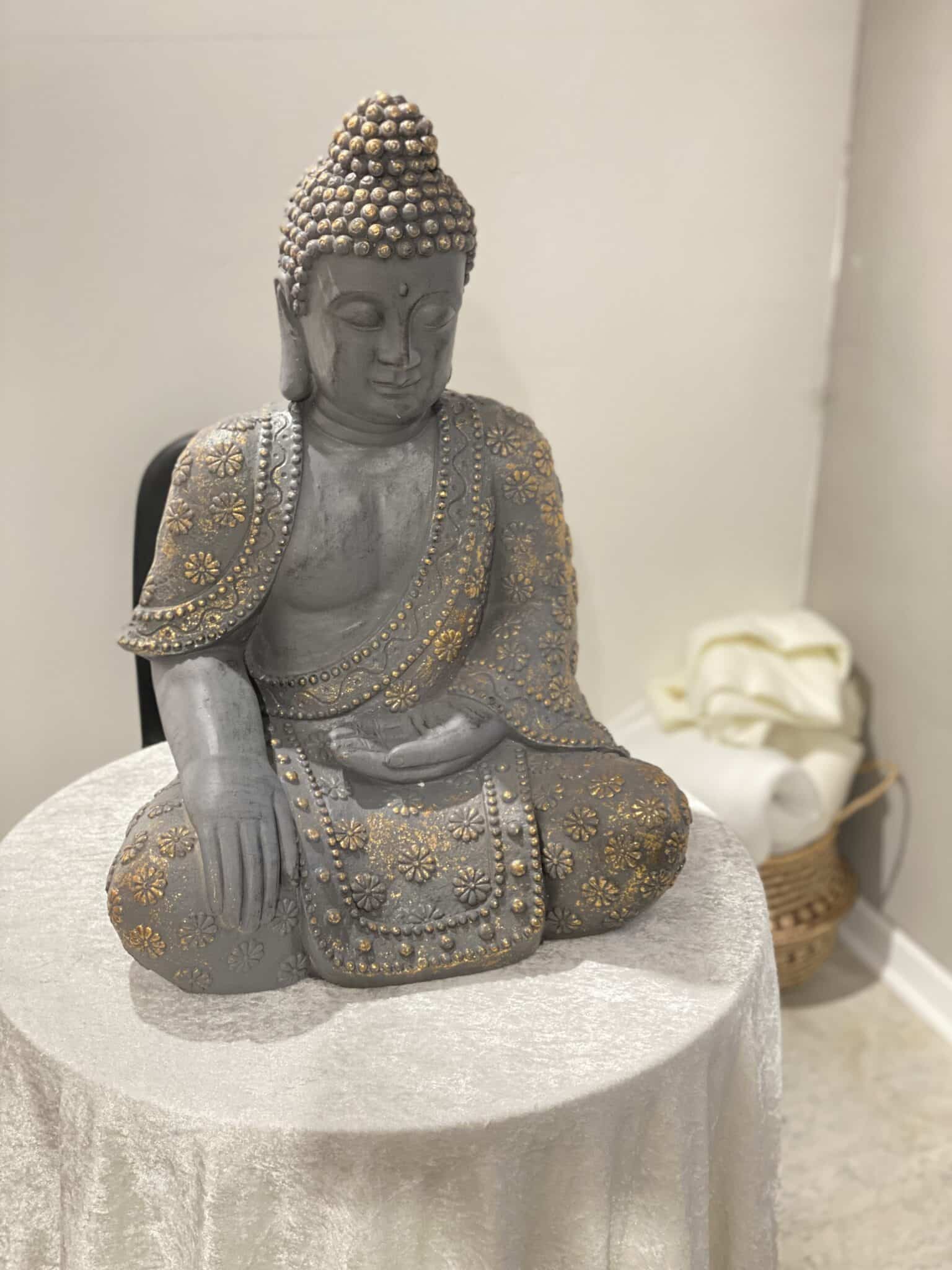 Buddhaen udstråler en stille, fredfyldt og oplysende energi, der inviterer ro, nærvær og indre balance ind i rummet. Den symboliserer visdom, medfølelse og vejen mod indre fred og minder dig blidt om at vende opmærksomheden indad. En smuk spirituel ledsager til meditation, refleksion og harmonisk atmosfære.