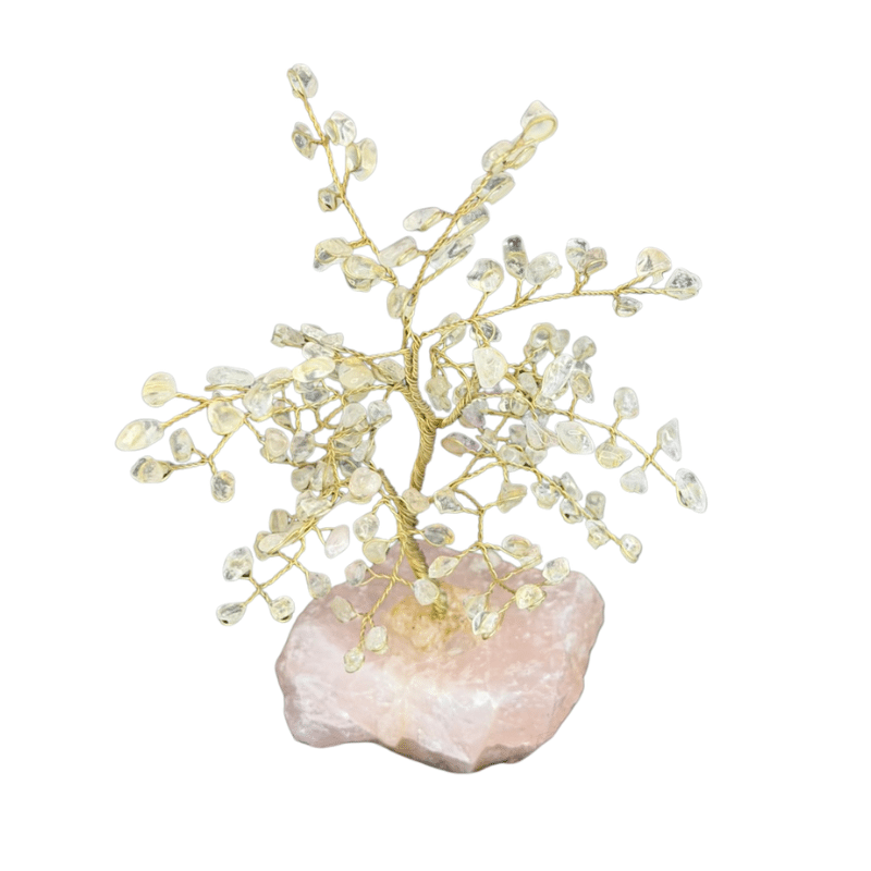 Krystaltræ med Bjergkrystal grene og Rosakvarts bund