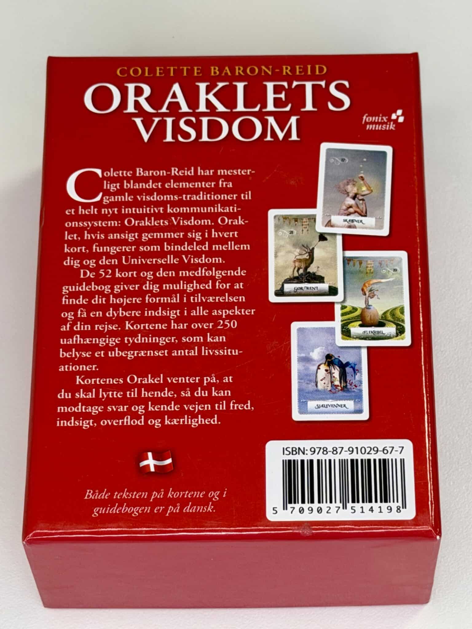 Colette Baron-Reid har mesterligt blandet elementer fra visdoms-traditioner til et helt nyt intuitivt kommunikationssystem: Oraklets Visdom. Oraklet, hvis ansigt gemmer sig i hvert kort, fungerer som bindeled mellem dig og den Universelle Visdom.