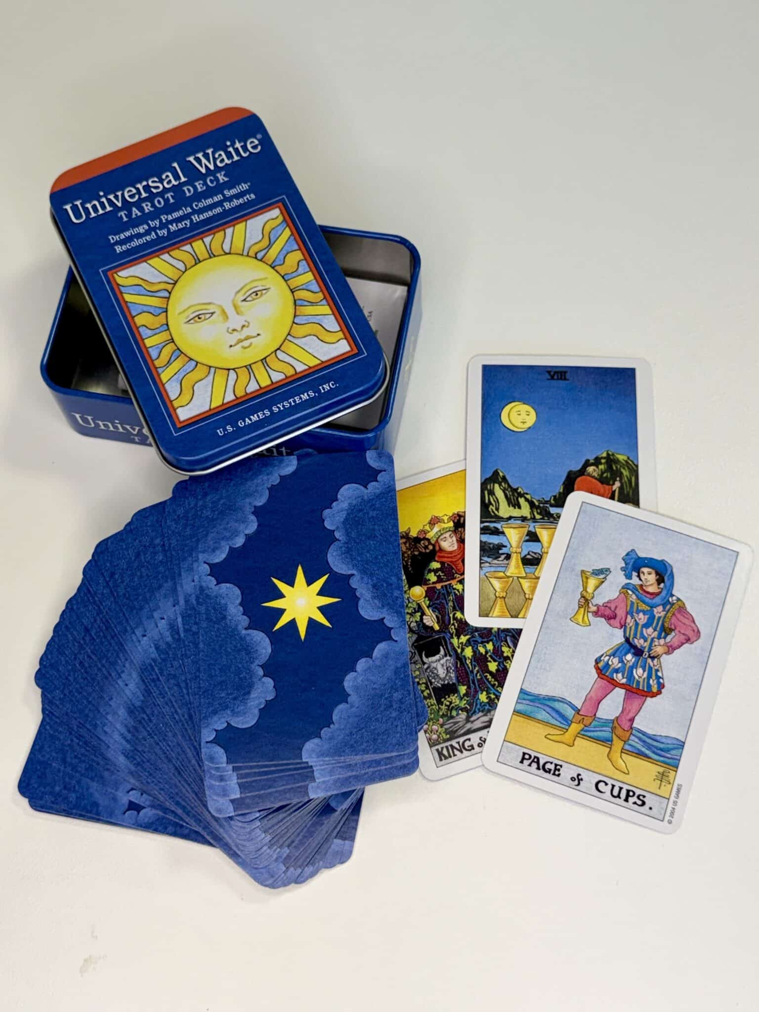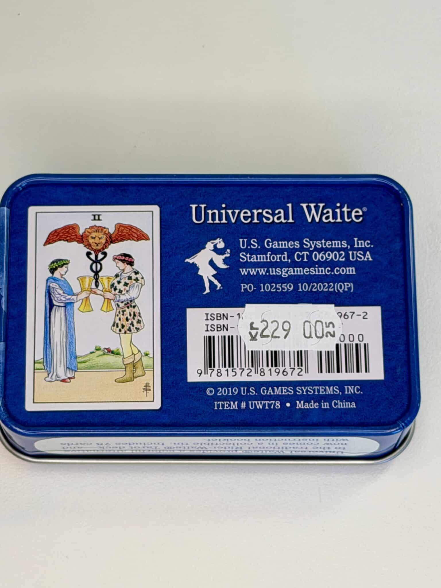 Universal Waite® provides a colorful alternative to the traditional Rider-Waite®Tarot deck – and now comes in a collectible tin. Includes 78 cards with instruction booklet.